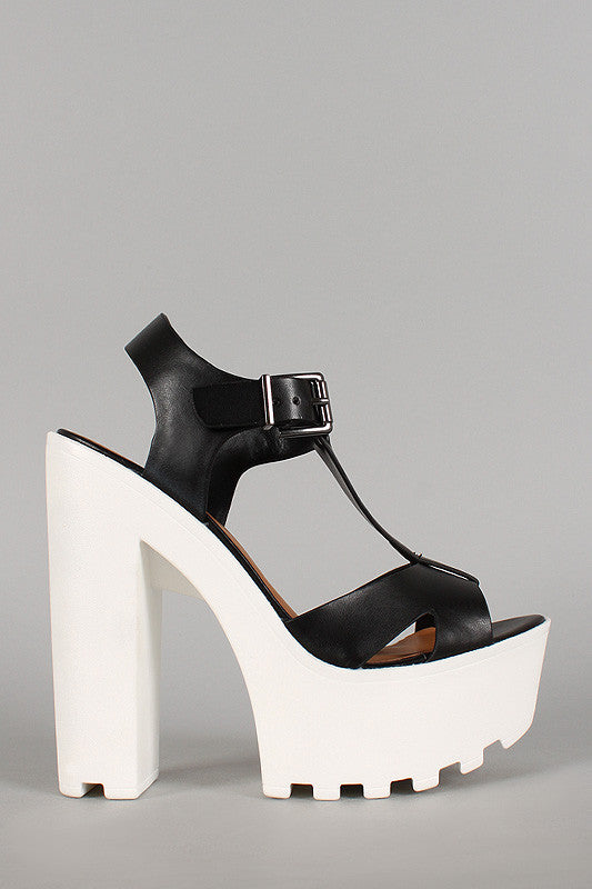 This chunky lug sole platform heel. Finished with lightly padded insole for comfort and adjustable ankle strap with side buckle closure.
