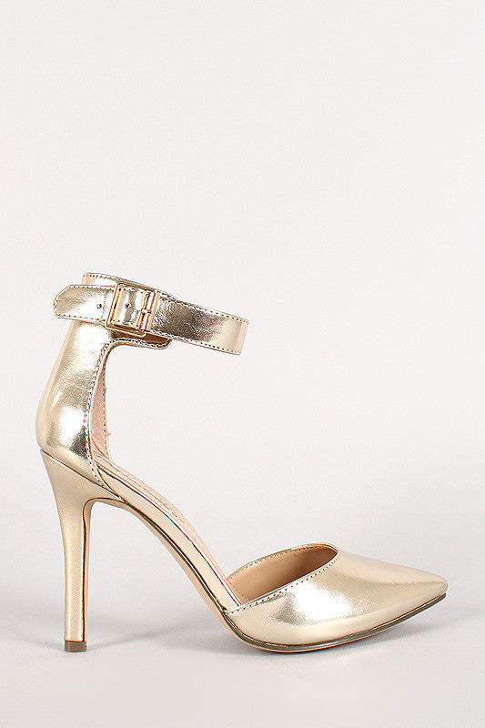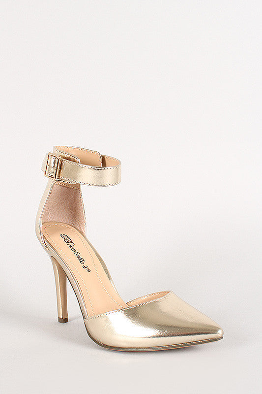 Breckelle Metallic Ankle Strap Buckle Pointy Toe Pump