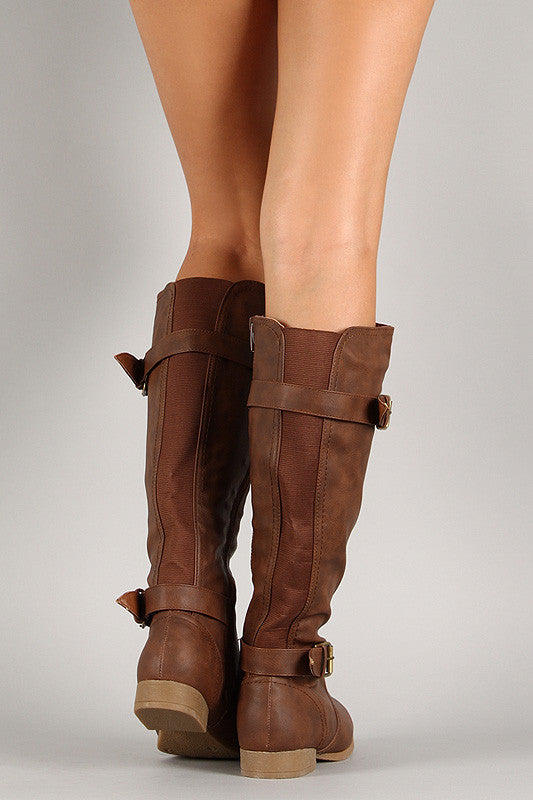 Featuring round toe, partial elastic insert at the back, dual buckle strap details, low heel, cushioned insole, soft interior lining, and full size zipper closure for easy on/off.