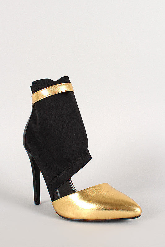 Liliana Two Tone Spandex Asymetrical Cuff Pointy Toe Pump