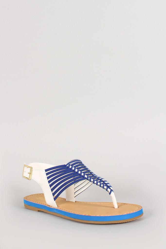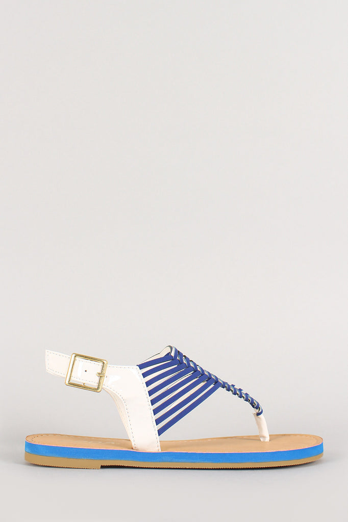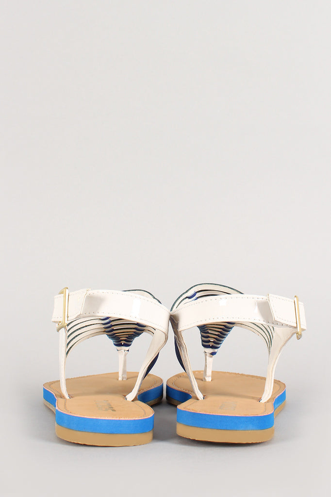 Soda Patent Two Tone T-Strap Slingback Flat Sandal