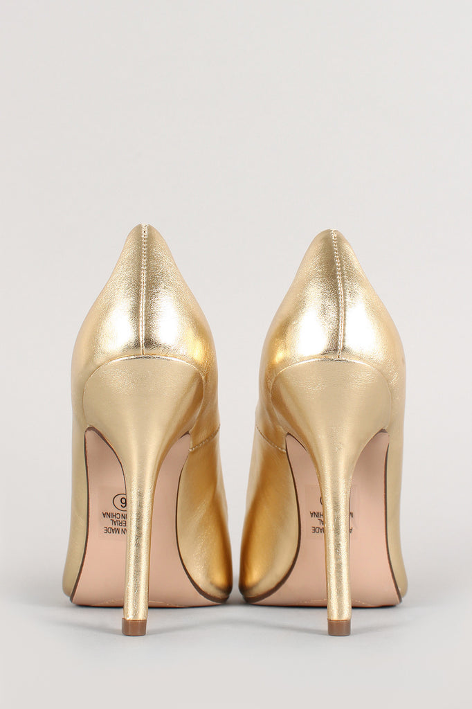 This shimmering pointy toe , scooped vamp, stiletto heel, lightly padded insole, and easy slide style.