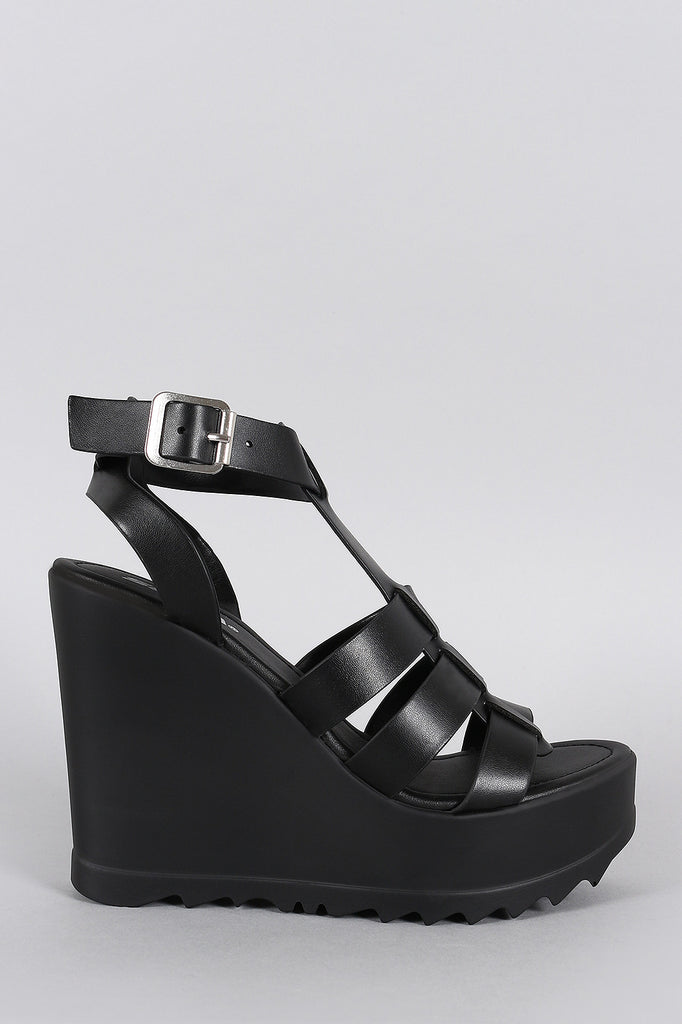 Soda Strappy Open Toe T-Strap Lug Sole Platform Wedge