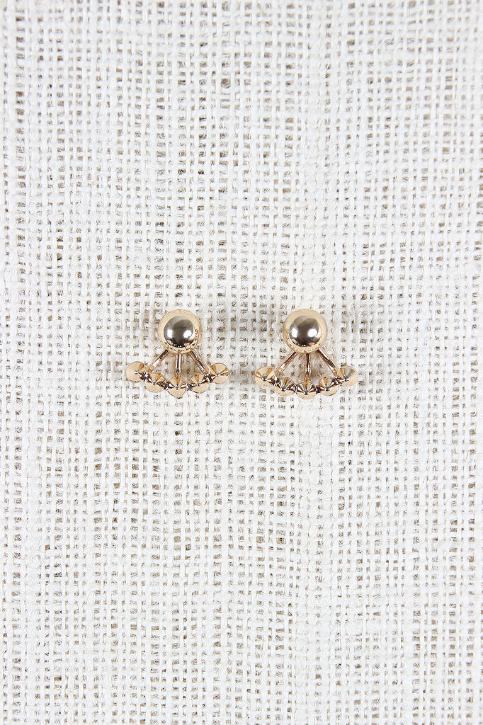 These ear jacket earrings feature a glossy round stud front and conical spikes back.