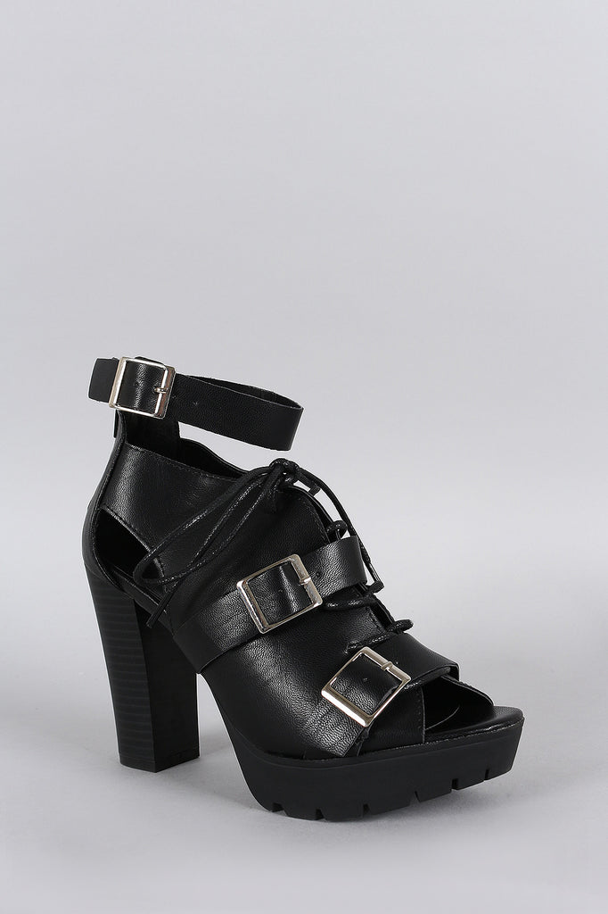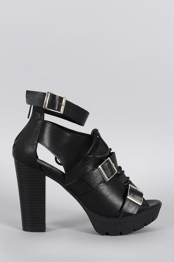 Breckelle Buckle Ankle Strap Cutout Peep Toe Heeled Bootie