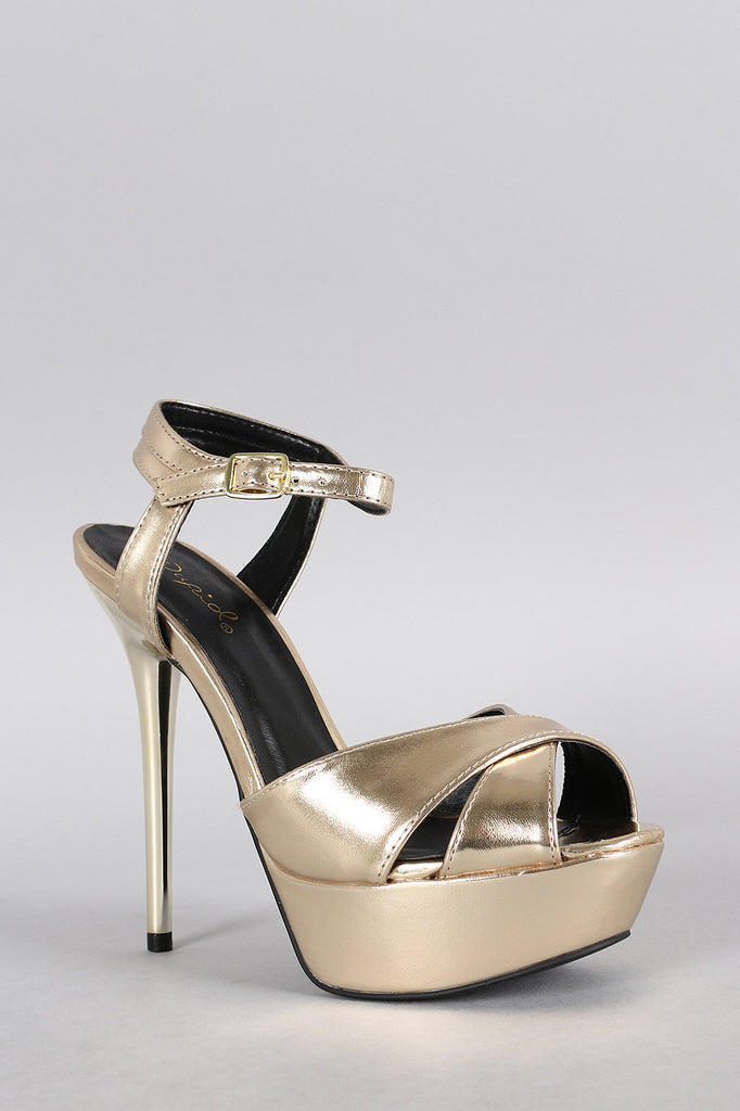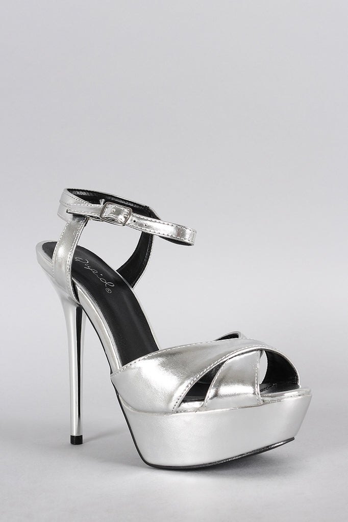 This stiletto platform , and stiletto heel. Finished with lightly padded insole and adjustable ankle strap with buckle fastening.