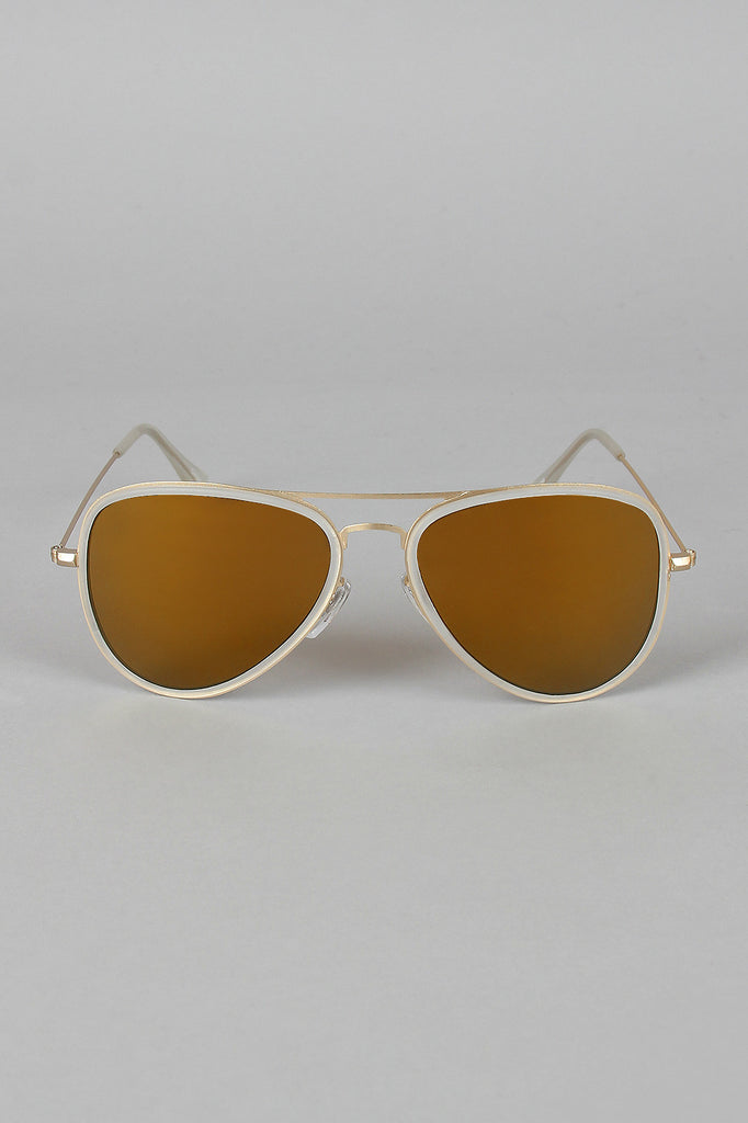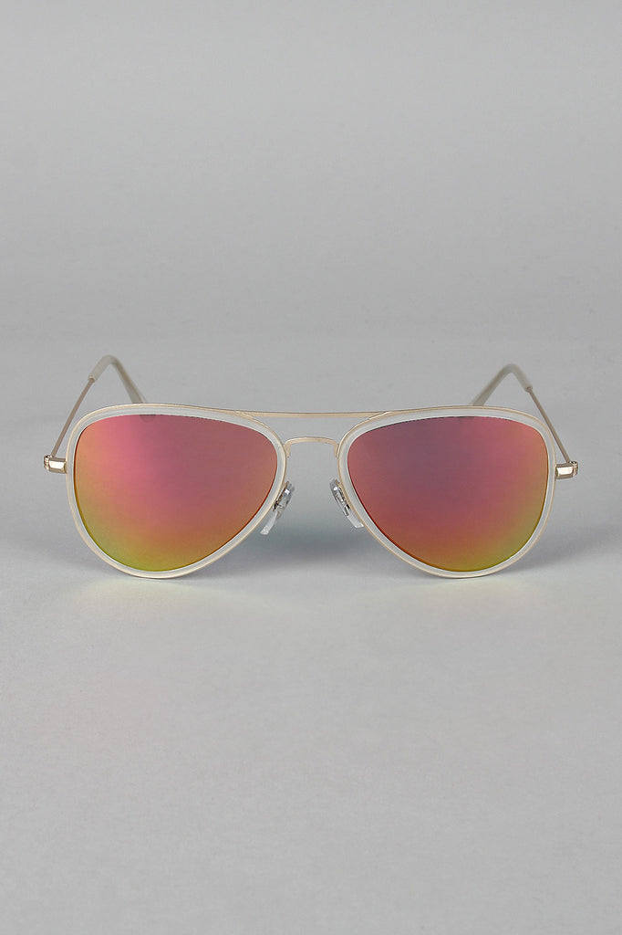 Aviator sunglasses with lightweight frosted metal frame, colorful reflective lenses, and nose pads.