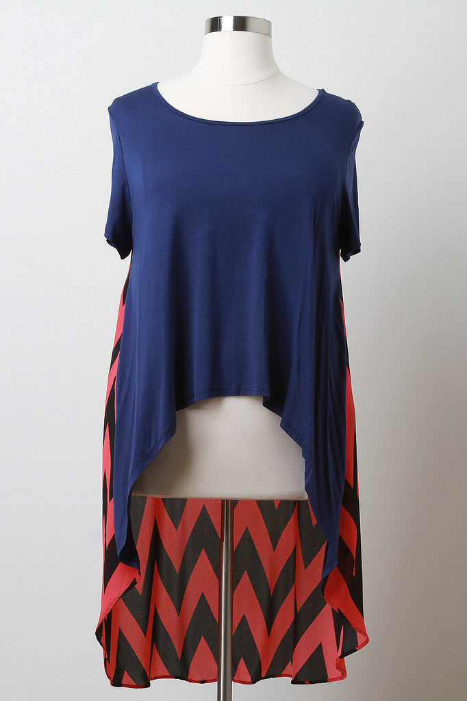 Plus Size Chevron Chiffon High-Low Top