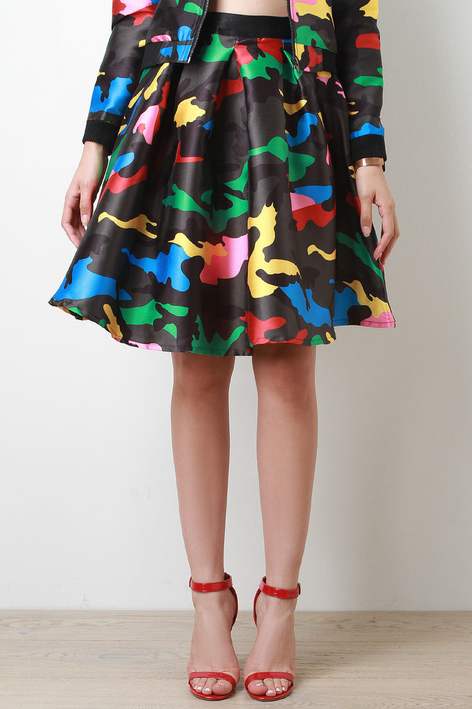 Colorful Camouflage Print A-line Midi Skirt
