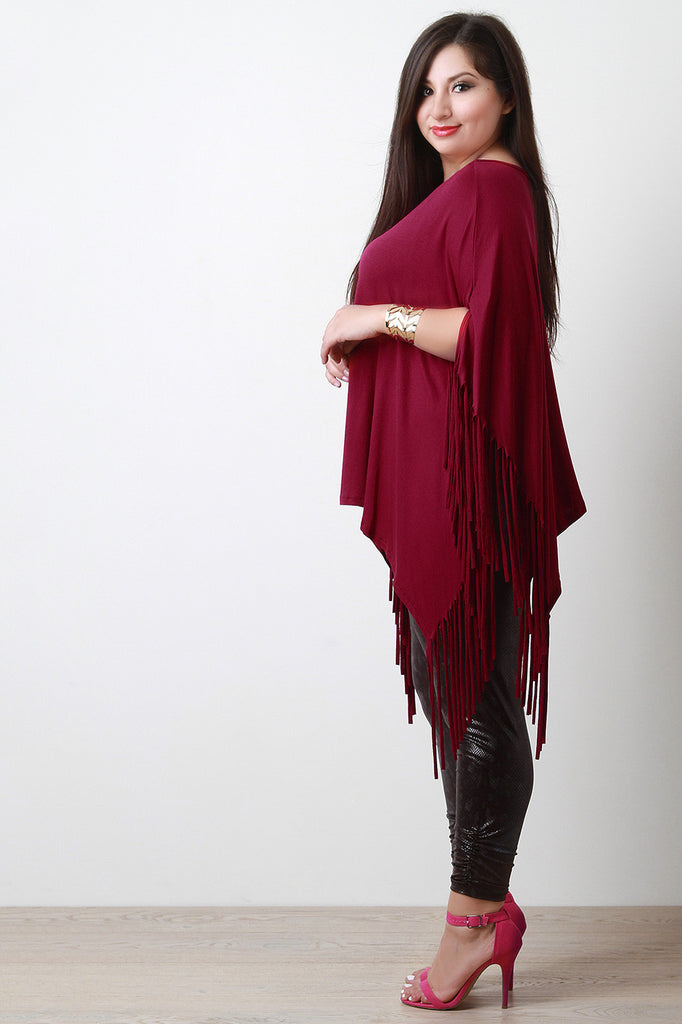 Plus Size Fringe Accent Poncho Top