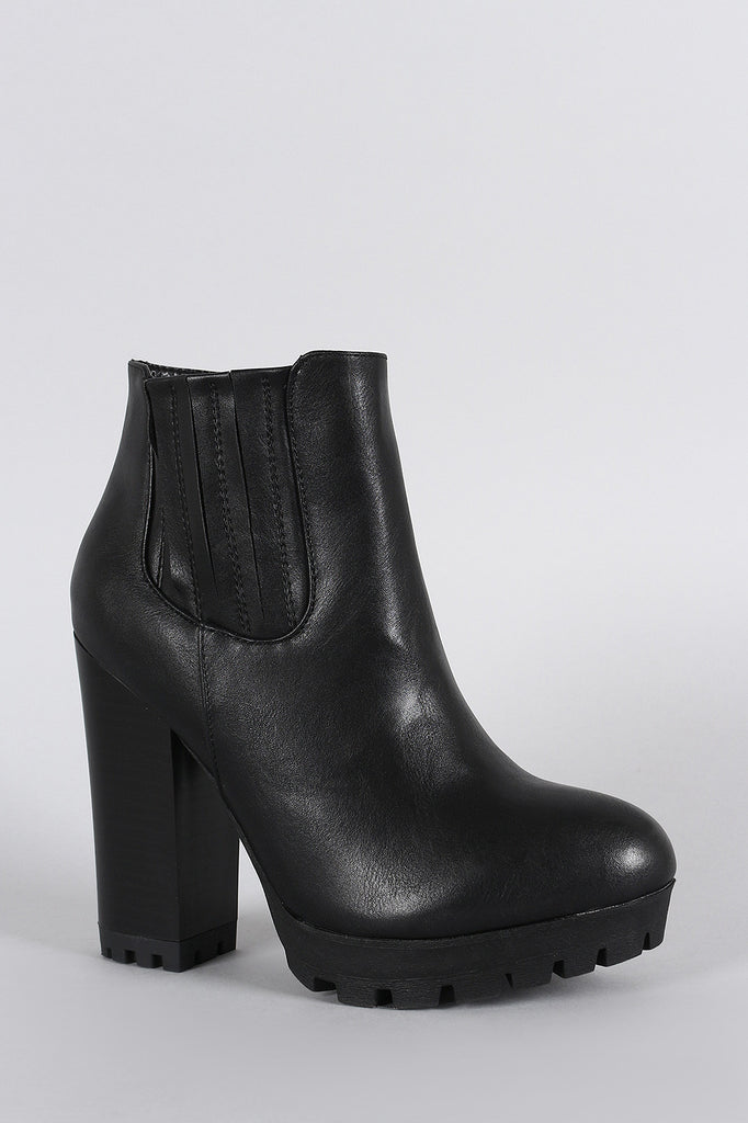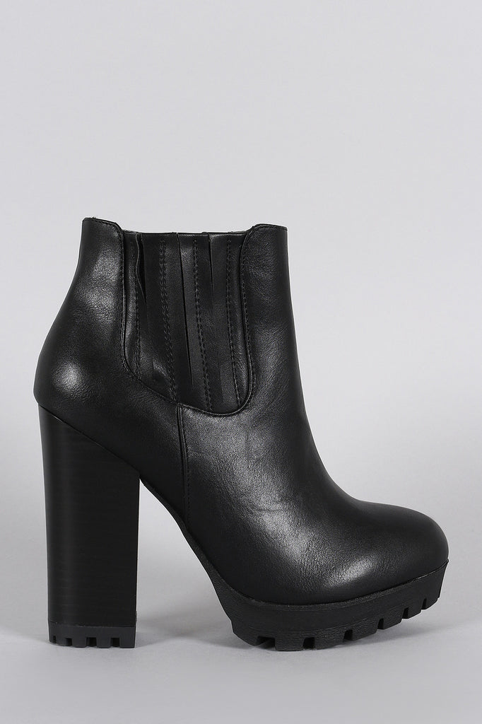 Bamboo Slit Gores Platform Chunky Heel Lug Sole Ankle Boots