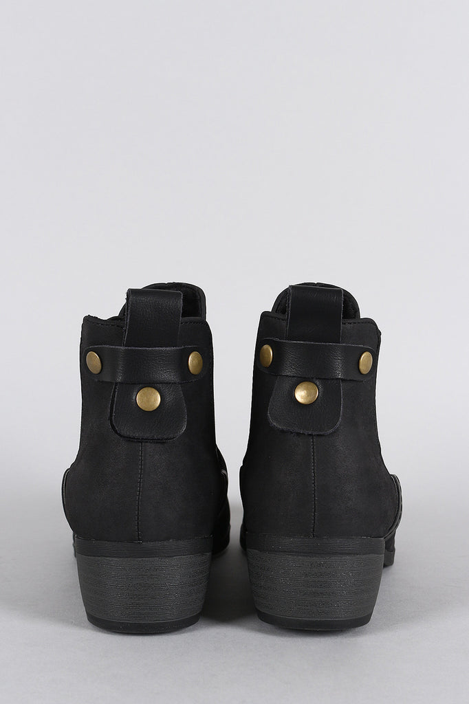 Qupid Elastic Studded Round Toe Cowgirl Western Ankle Boots