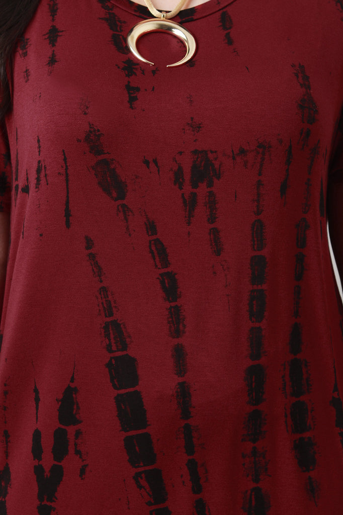 Tie Dye Curved Hem Short Sleeves Tunic Midi Dress