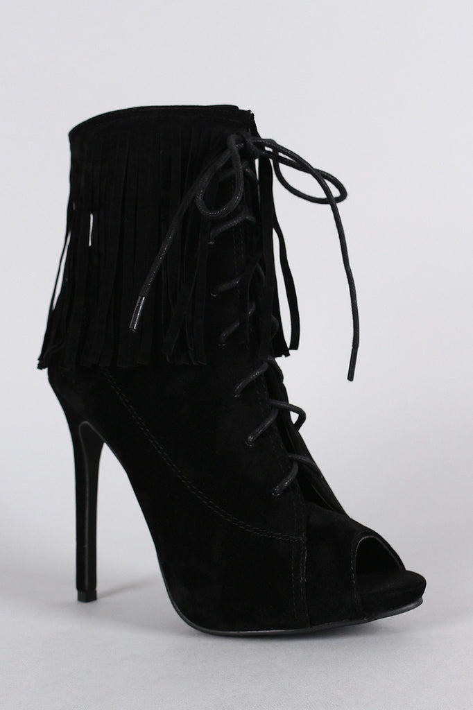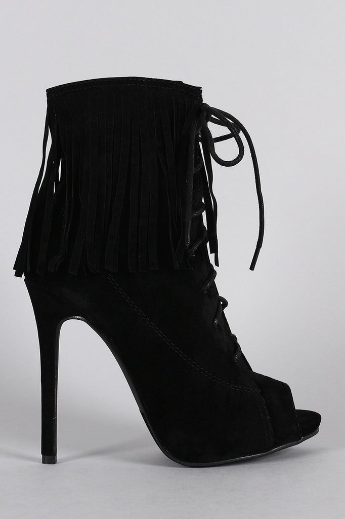 Liliana Fringe Cuff Corset Laces Peep Toe Booties