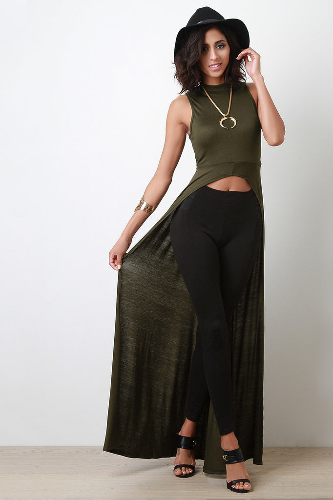 High-Low Sleeveless Mock-Neck Maxi Top