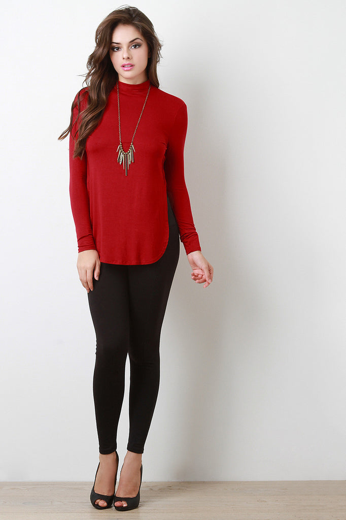 Mock Neck Long Sleeves Teardrop Open Back Top