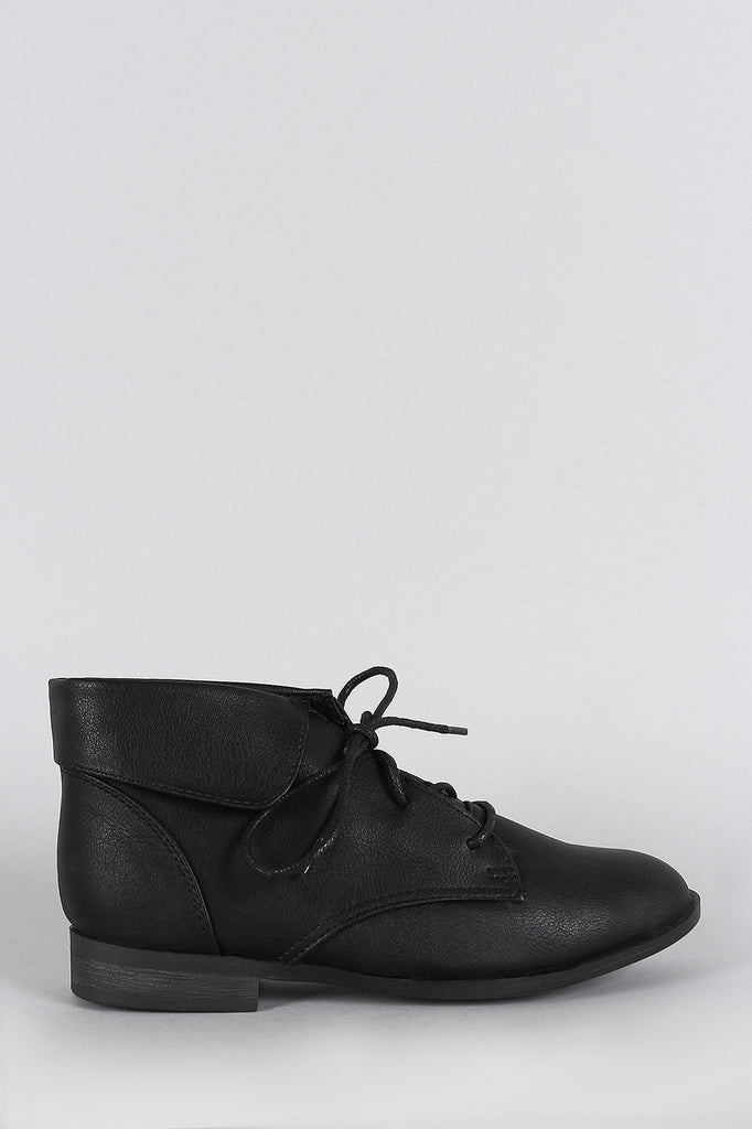 Breckelle Collar Round Toe Lace Up Oxford Booties