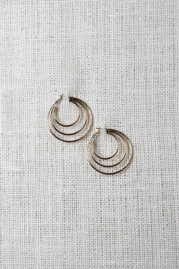 These earrings feature a three hoop design with textured outermost ring and latch back closures.