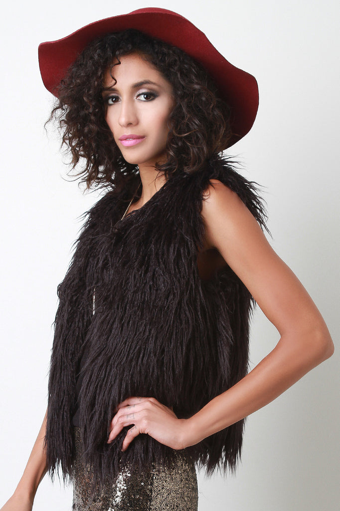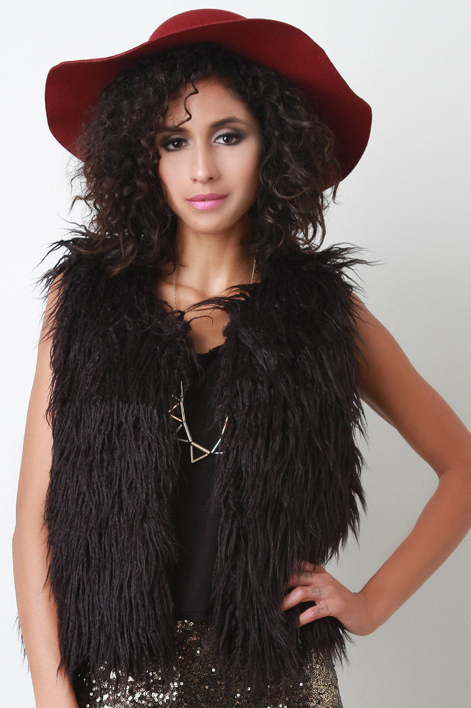 This faux fur ; featuring lining as well. It is open front design with hook-and-loop closures. Accessories sold separately. 70% Acrylic. 30% Polyester.