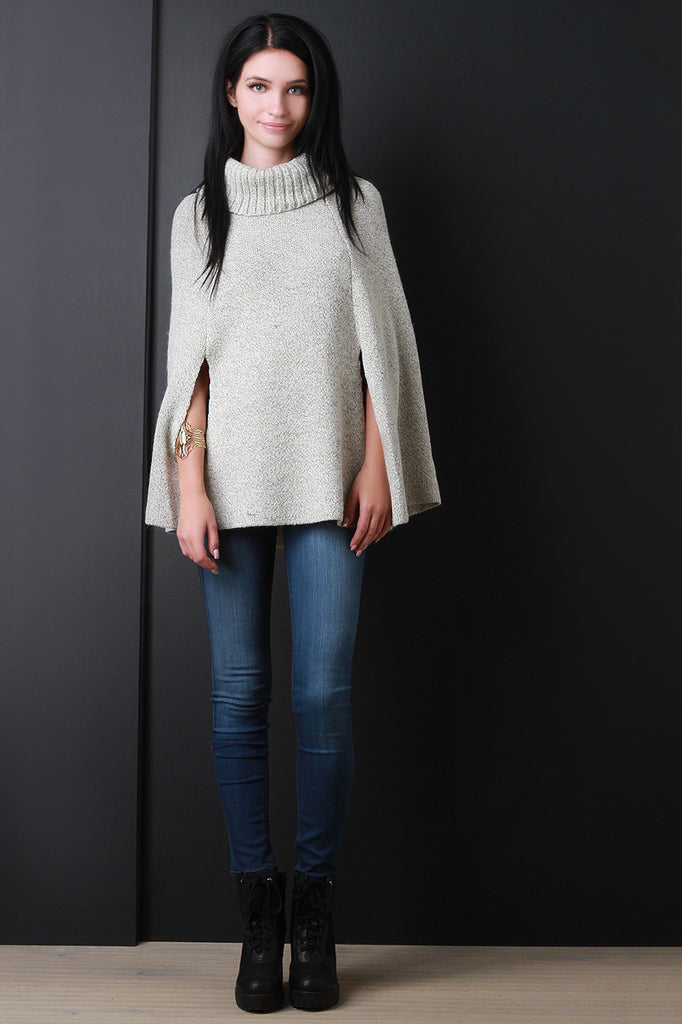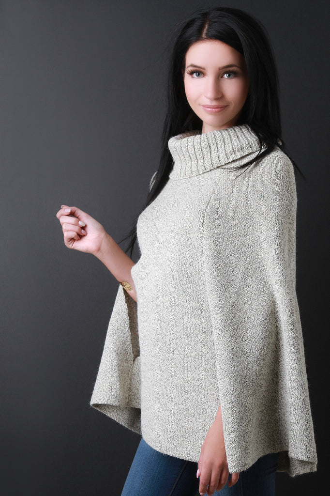 This poncho cape-style poncho features thick knit, ribbed turtleneck, and two arm openings. Accessories sold separately. 55% Cotton, 45% Acrylic.