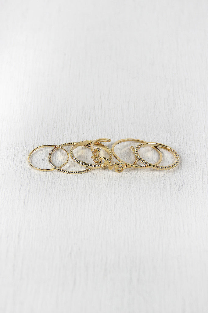 These six rings feature different types of ring bands including a beaded, hammered, plain thin and thick, and love bands with a glossy look along with some classified as midi rings.
