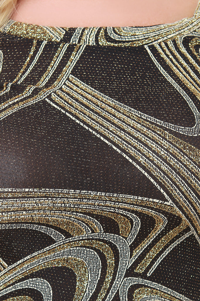 This midi dress features stretch knit, wavy glitter pattern throughout, round neckline, and long sleeves. Accessories sold separately. Made in U.S.A. 86% Nylon, 9% Metallic, 5% Spandex.