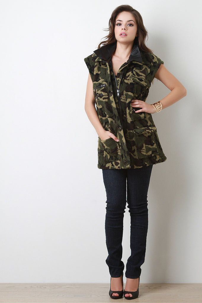 Camouflage Shearling Vest