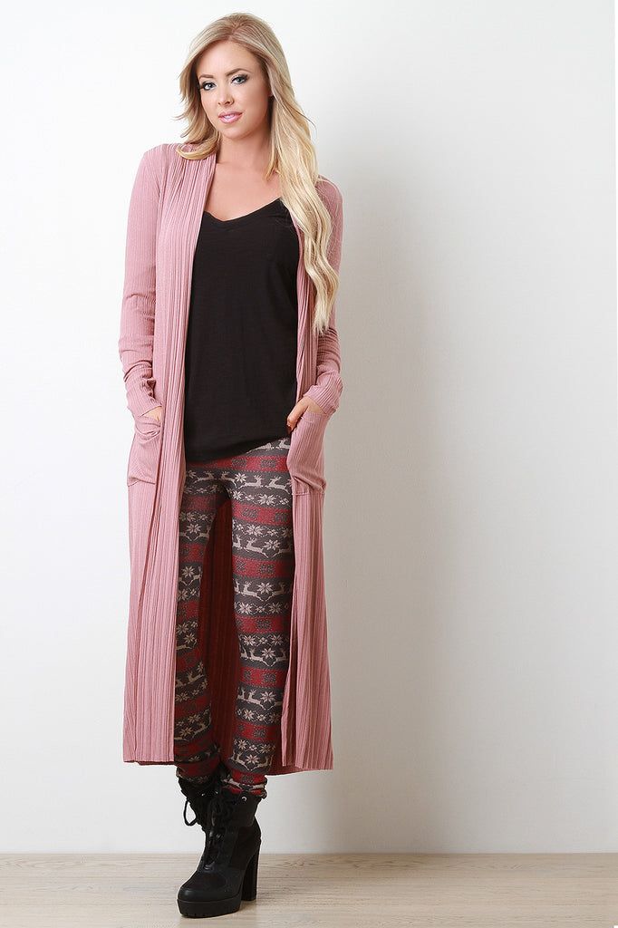 Ribbed Knit Floor Swept Cardigan