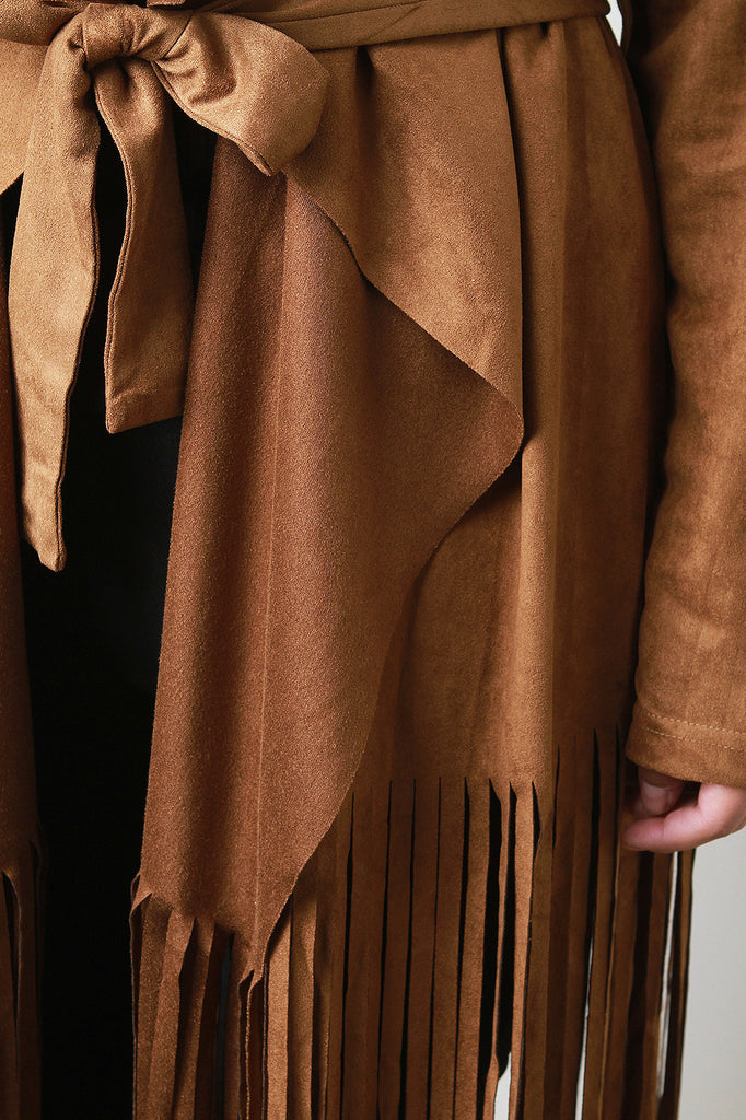 Belted Fringed Suede Trench Coat