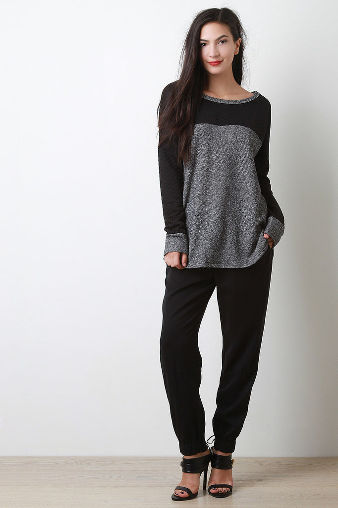 Quilted Two Tone Long Sleeve Top