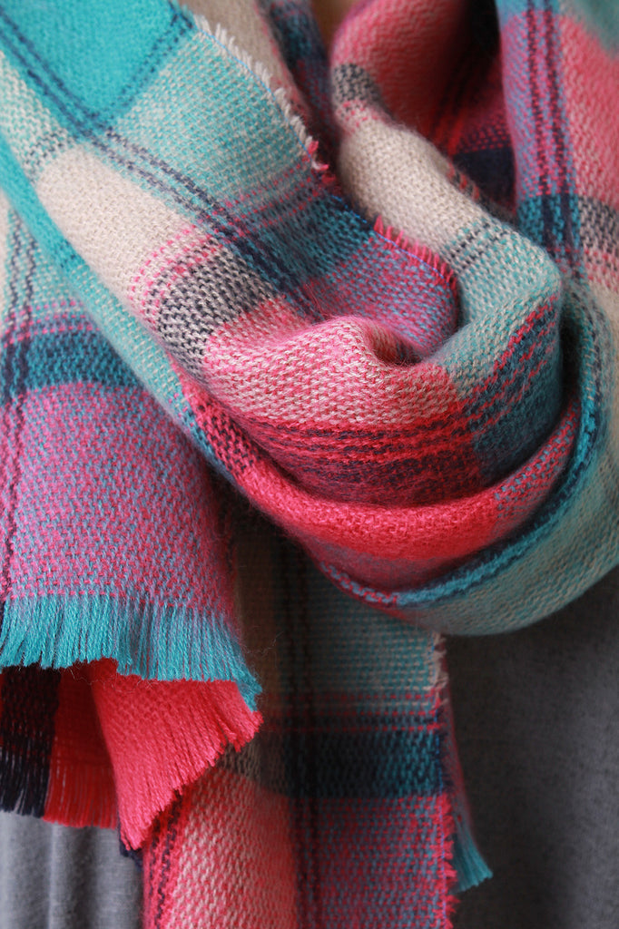 This very stylish scarf features a very miniature cross over knit construction along with a plaid design and a cut-out effect around the edges. 100% Acrylic.